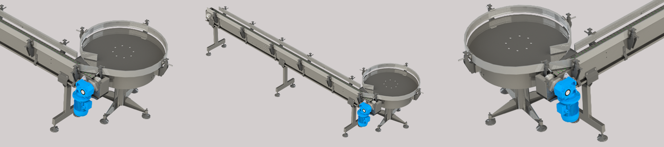 Turntables are used for changing directions or turning goods on the conveyor. The modular construction allows an optimum adjustment to varying applications. Roller or chain conveyors with or without a shift unit act as load carriers. Turntables allow 2, 3, or 4 stopping points for maximum versatility.